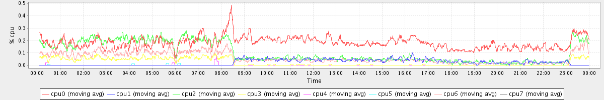 avg(cpu0) = 0.18 avg(cpu1) = 0.02 avg(cpu2) = 0.10 avg(cpu3) = 0.02 avg(cpu4) = 0.00 avg(cpu5) = 0.00 avg(cpu6) = 0.06 avg(cpu7) = 0.00