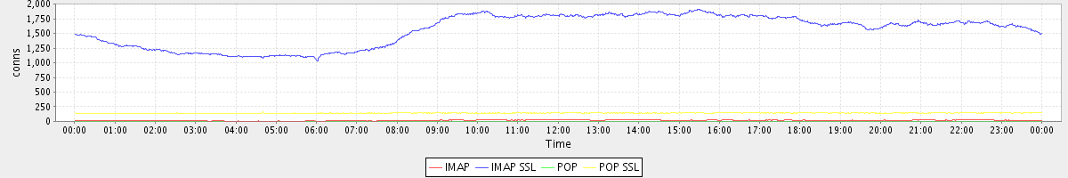 avg(IMAP) = 17.15 avg(IMAP SSL) = 1559.33 avg(POP) = 0.02 avg(POP SSL) = 142.72