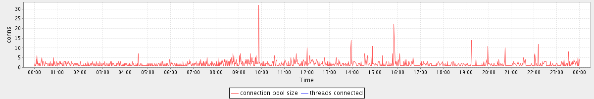 avg(connection pool size) = 1.55 avg(threads connected) = 0.00