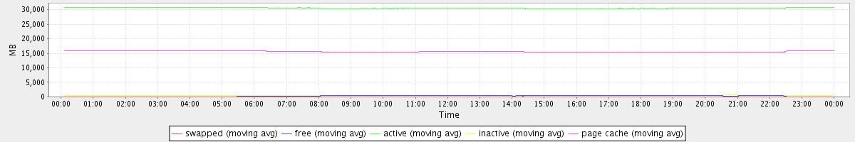 avg(swapped) = 0.23 avg(free) = 318.06 avg(active) = 30546.54 avg(inactive) = 539.52 avg(page cache) = 15602.87