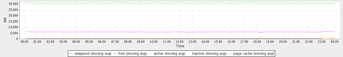 avg(swapped) = 0.23 avg(free) = 209.15 avg(active) = 30577.28 avg(inactive) = 634.67 avg(page cache) = 5997.06