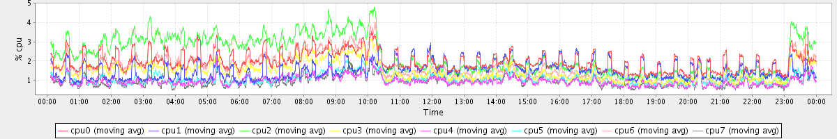 avg(cpu0) = 2.07 avg(cpu1) = 0.20 avg(cpu2) = 0.35 avg(cpu3) = 0.24 avg(cpu4) = 0.14 avg(cpu5) = 0.18 avg(cpu6) = 0.24 avg(cpu7) = 0.17
