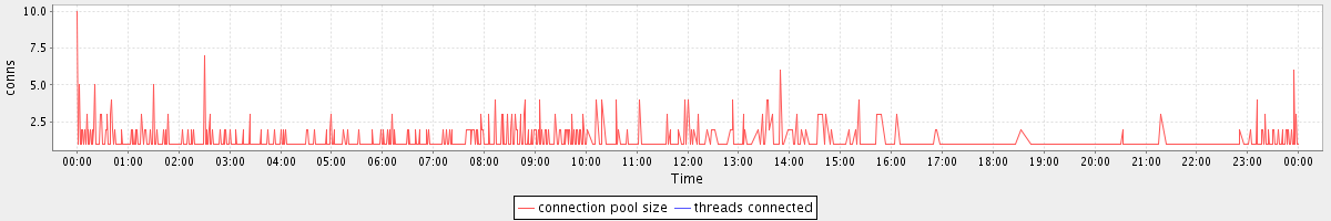 avg(connection pool size) = 0.86 avg(threads connected) = 0.00