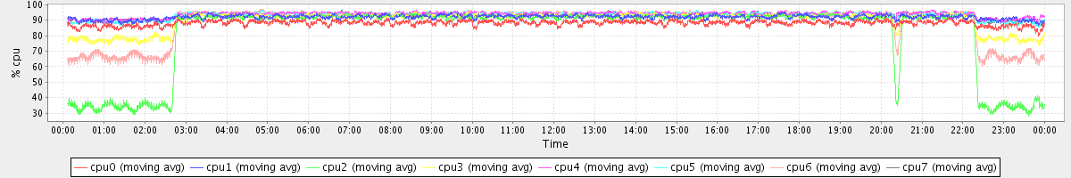 avg(cpu0) = 88.17 avg(cpu1) = 92.08 avg(cpu2) = 81.18 avg(cpu3) = 90.06 avg(cpu4) = 93.74 avg(cpu5) = 93.25 avg(cpu6) = 89.09 avg(cpu7) = 92.97