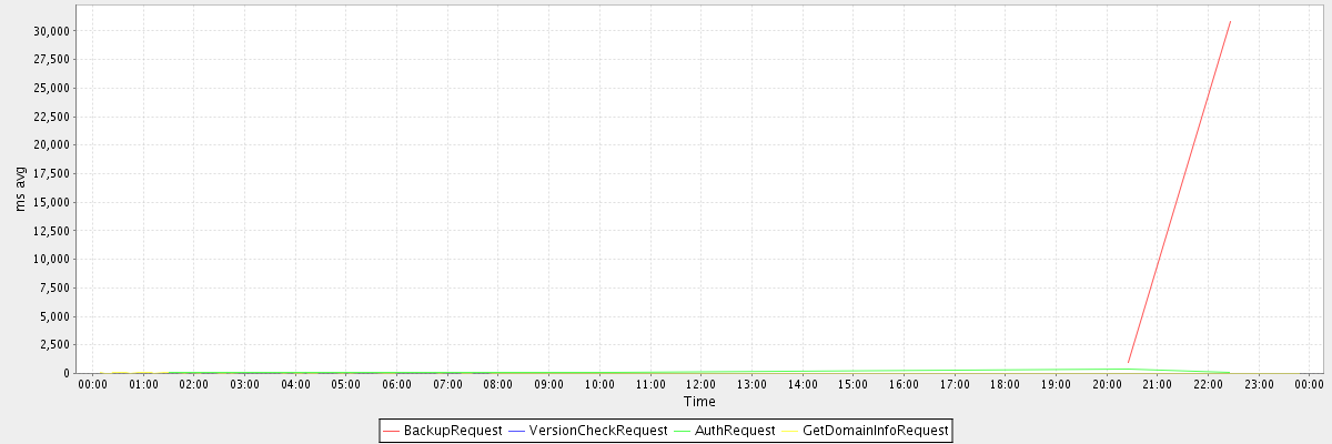 avg(BackupRequest) = 15901.00 avg(VersionCheckRequest) = 955.00 avg(AuthRequest) = 128.75 avg(GetDomainInfoRequest) = 4.46