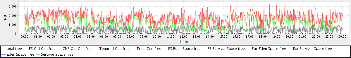 avg(total free) = 1748.00 avg(PS Old Gen free) = 0.00 avg(CMS Old Gen free) = 1199.00 avg(Tenured Gen free) = 0.00 avg(Train Gen free) = 0.00 avg(PS Eden Space free) = 0.00 avg(PS Survivor Space free) = 0.00 avg(Par Eden Space free) = 490.53 avg(Par Survivor Space free) = 58.47 avg(Eden Space free) = 0.00 avg(Survivor Space free) = 0.00