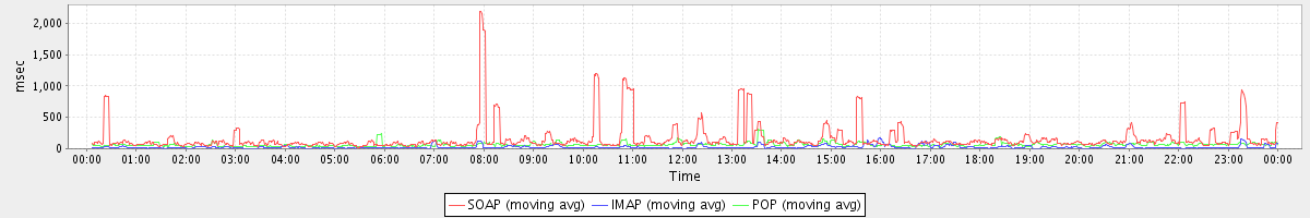 Host zm08.stanford.edu: Mailboxd: Response Time by Client Protocol
