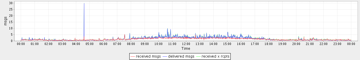 avg(received msgs) = 1.33 avg(delivered msgs) = 1.67 avg(received x rcpts) = 1.82