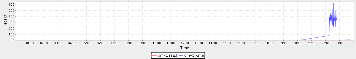 avg(dm-1 read) = 0.08 avg(dm-1 write) = 8.57