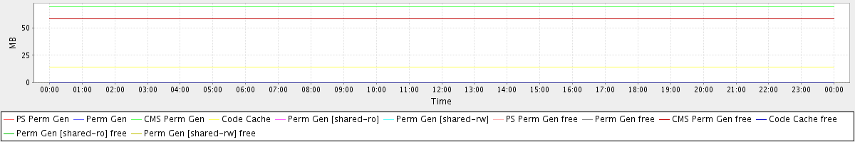 avg(PS Perm Gen) = 0.00 avg(Perm Gen) = 0.00 avg(CMS Perm Gen) = 69.46 avg(Code Cache) = 14.00 avg(Perm Gen [shared-ro]) = 0.00 avg(Perm Gen [shared-rw]) = 0.00 avg(PS Perm Gen free) = 0.00 avg(Perm Gen free) = 0.00 avg(CMS Perm Gen free) = 58.54 avg(Code Cache free) = 0.18 avg(Perm Gen [shared-ro] free) = 0.00 avg(Perm Gen [shared-rw] free) = 0.00