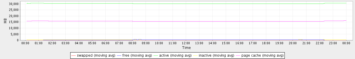 avg(swapped) = 0.23 avg(free) = 360.95 avg(active) = 30288.36 avg(inactive) = 541.89 avg(page cache) = 15682.64