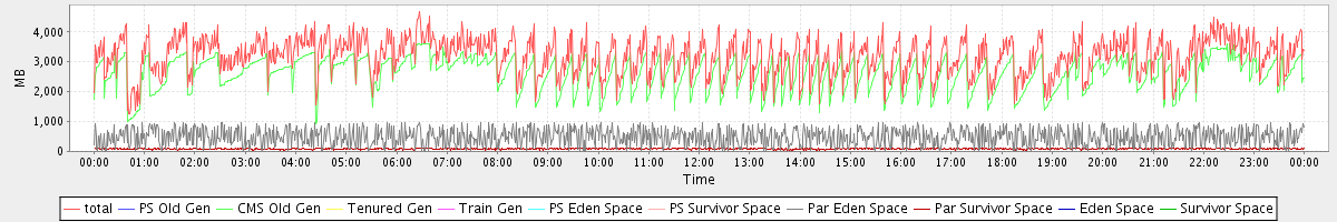 avg(total) = 3195.86 avg(PS Old Gen) = 0.00 avg(CMS Old Gen) = 2618.85 avg(Tenured Gen) = 0.00 avg(Train Gen) = 0.00 avg(PS Eden Space) = 0.00 avg(PS Survivor Space) = 0.00 avg(Par Eden Space) = 491.36 avg(Par Survivor Space) = 85.64 avg(Eden Space) = 0.00 avg(Survivor Space) = 0.00
