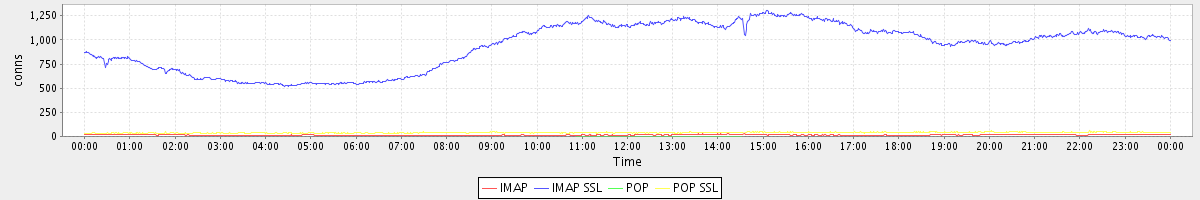 avg(IMAP) = 14.56 avg(IMAP SSL) = 937.60 avg(POP) = 0.00 avg(POP SSL) = 39.76