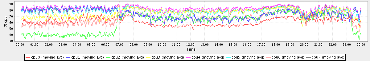 avg(cpu0) = 61.63 avg(cpu1) = 73.71 avg(cpu2) = 60.86 avg(cpu3) = 75.79 avg(cpu4) = 83.14 avg(cpu5) = 79.14 avg(cpu6) = 67.05 avg(cpu7) = 79.74
