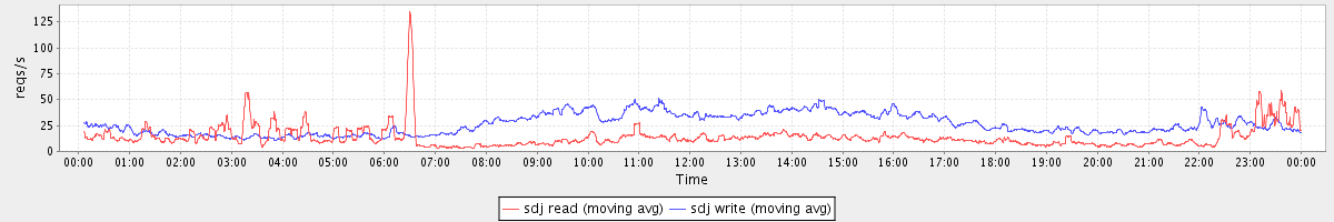 avg(sda read) = 27.58 avg(sda write) = 61.21