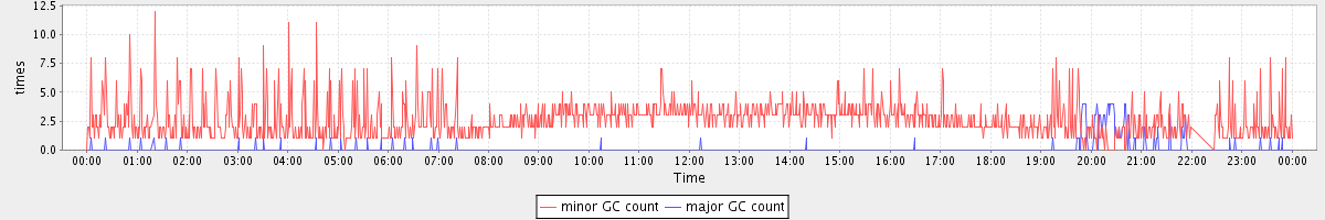 avg(minor GC count) = 2.65 avg(major GC count) = 0.13