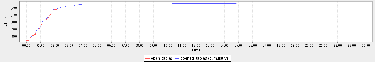 avg(open_tables) = 1178.19 avg(opened_tables (cumulative)) = 1230.89