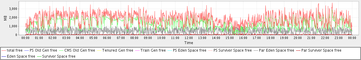 avg(total free) = 1836.52 avg(PS Old Gen free) = 0.00 avg(CMS Old Gen free) = 1302.93 avg(Tenured Gen free) = 0.00 avg(Train Gen free) = 0.00 avg(PS Eden Space free) = 0.00 avg(PS Survivor Space free) = 0.00 avg(Par Eden Space free) = 493.21 avg(Par Survivor Space free) = 40.37 avg(Eden Space free) = 0.00 avg(Survivor Space free) = 0.00