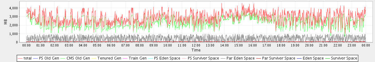 avg(total) = 2868.92 avg(PS Old Gen) = 0.00 avg(CMS Old Gen) = 2317.07 avg(Tenured Gen) = 0.00 avg(Train Gen) = 0.00 avg(PS Eden Space) = 0.00 avg(PS Survivor Space) = 0.00 avg(Par Eden Space) = 471.66 avg(Par Survivor Space) = 80.19 avg(Eden Space) = 0.00 avg(Survivor Space) = 0.00