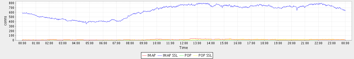 avg(IMAP) = 13.31 avg(IMAP SSL) = 632.05 avg(POP) = 0.01 avg(POP SSL) = 12.49