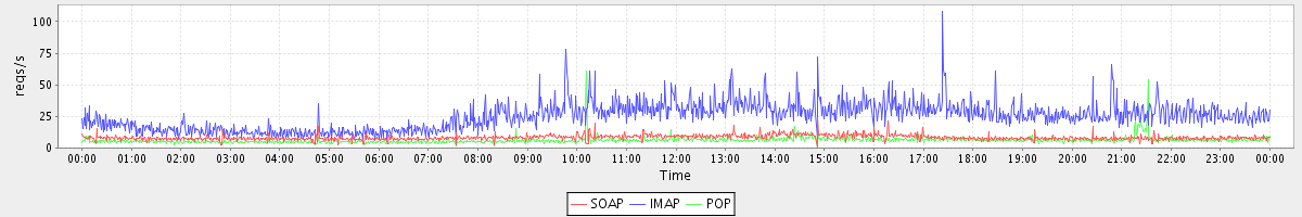 Host zm07.stanford.edu: Mailboxd: Request Rate by Client Protocol