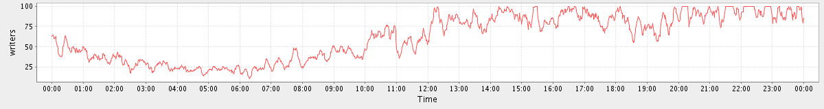 avg(user) = 11.94 avg(sys) = 1.11 avg(idle) = 80.67 avg(iowait) = 5.90 avg(nice) = 0.00 avg(irq) = 0.03 avg(softirq) = 0.34