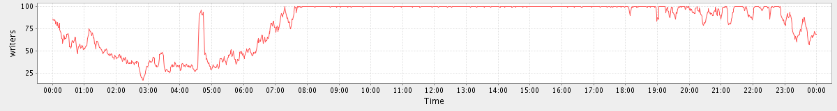 avg(user) = 19.33 avg(sys) = 1.46 avg(idle) = 74.23 avg(iowait) = 4.40 avg(nice) = 0.00 avg(irq) = 0.05 avg(softirq) = 0.53