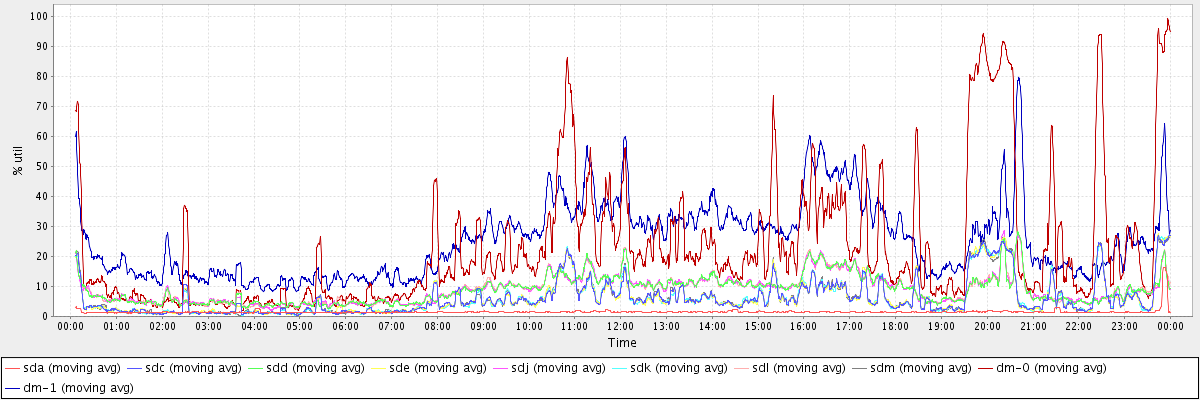avg(sda) = 1.53 avg(sdc) = 6.25 avg(sdd) = 8.95 avg(sde) = 6.21 avg(sdj) = 8.97 avg(sdk) = 6.23 avg(sdl) = 8.99 avg(sdm) = 6.28 avg(dm-0) = 23.41 avg(dm-1) = 25.44
