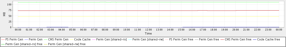 avg(PS Perm Gen) = 0.00 avg(Perm Gen) = 0.00 avg(CMS Perm Gen) = 109.83 avg(Code Cache) = 47.26 avg(Perm Gen [shared-ro]) = 0.00 avg(Perm Gen [shared-rw]) = 0.00 avg(PS Perm Gen free) = 0.00 avg(Perm Gen free) = 0.00 avg(CMS Perm Gen free) = 73.39 avg(Code Cache free) = 0.49 avg(Perm Gen [shared-ro] free) = 0.00 avg(Perm Gen [shared-rw] free) = 0.00