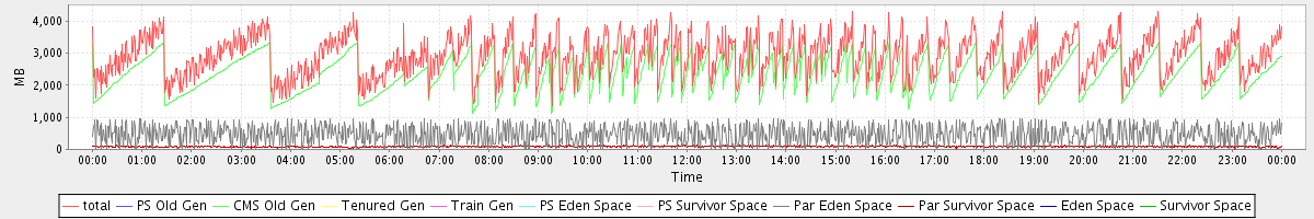 avg(total) = 2927.88 avg(PS Old Gen) = 0.00 avg(CMS Old Gen) = 2360.95 avg(Tenured Gen) = 0.00 avg(Train Gen) = 0.00 avg(PS Eden Space) = 0.00 avg(PS Survivor Space) = 0.00 avg(Par Eden Space) = 477.69 avg(Par Survivor Space) = 89.24 avg(Eden Space) = 0.00 avg(Survivor Space) = 0.00