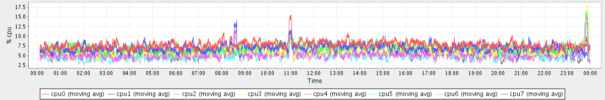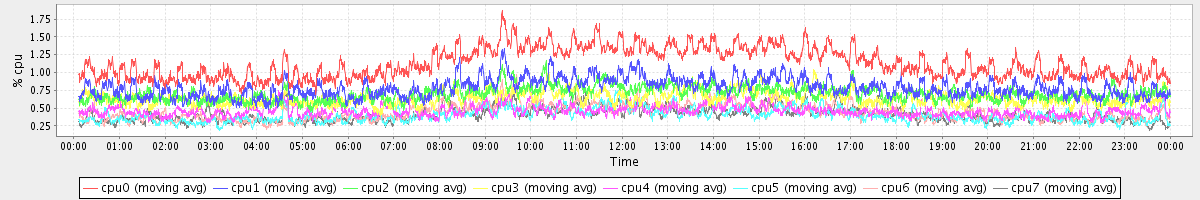 avg(cpu0) = 1.14 avg(cpu1) = 0.79 avg(cpu2) = 0.70 avg(cpu3) = 0.64 avg(cpu4) = 0.46 avg(cpu5) = 0.40 avg(cpu6) = 0.44 avg(cpu7) = 0.41