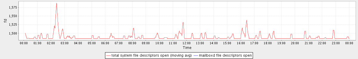 avg(total system file descriptors open) = 1489.23 avg(mailboxd file descriptors open) = 0.00