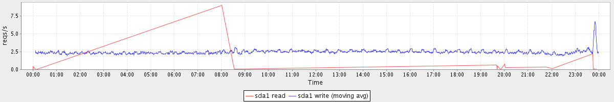 avg(sda1 read) = 0.01 avg(sda1 write) = 2.47