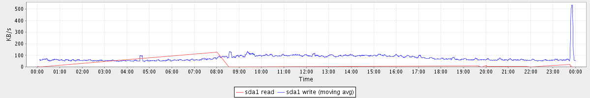 avg(sda1 read) = 0.07 avg(sda1 write) = 76.58