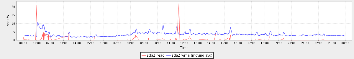 avg(sda2 read) = 0.06 avg(sda2 write) = 3.47