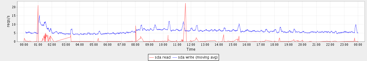 avg(sda read) = 0.07 avg(sda write) = 6.03