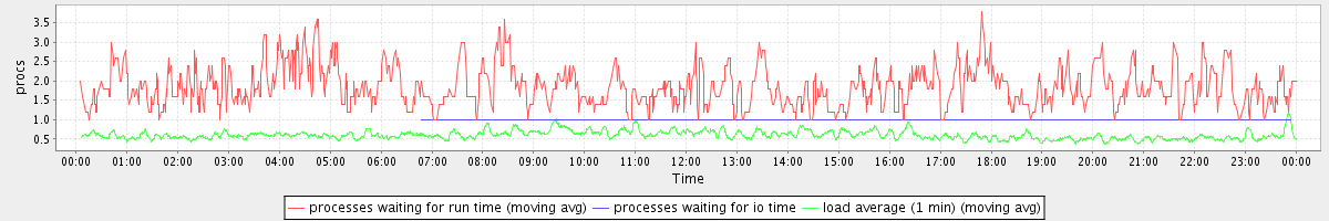 avg(processes waiting for run time) = 0.75 avg(processes waiting for io time) = 0.00 avg(load average (1 min)) = 0.60