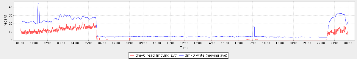 avg(dm-0 read) = 3.80 avg(dm-0 write) = 10.65