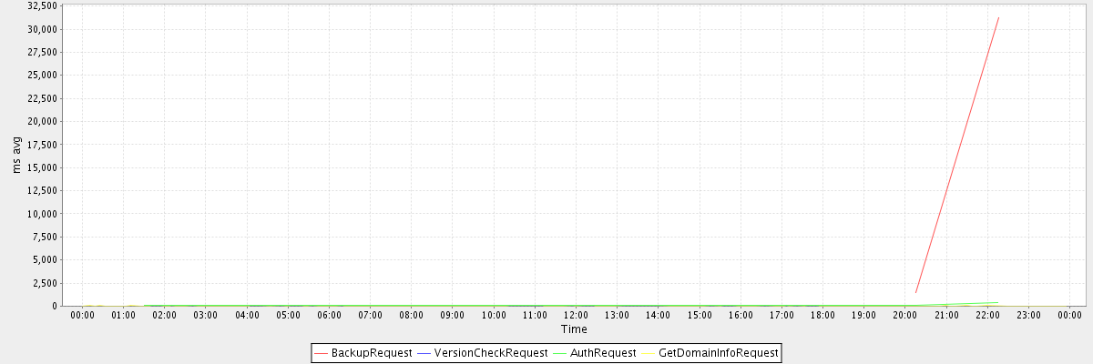 avg(BackupRequest) = 16349.00 avg(VersionCheckRequest) = 633.00 avg(AuthRequest) = 127.00 avg(GetDomainInfoRequest) = 5.00