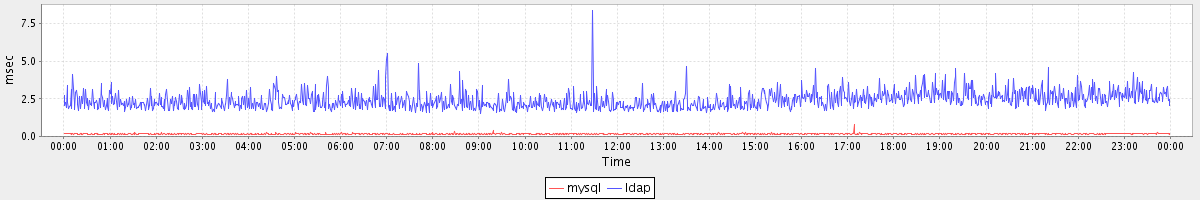 avg(mysql) = 0.17 avg(ldap) = 2.41