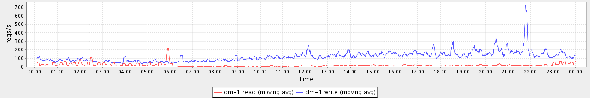 avg(dm-1 read) = 215.01 avg(dm-1 write) = 762.43