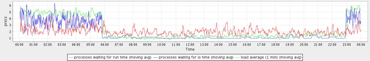 avg(processes waiting for run time) = 1.18 avg(processes waiting for io time) = 1.15 avg(load average (1 min)) = 2.33