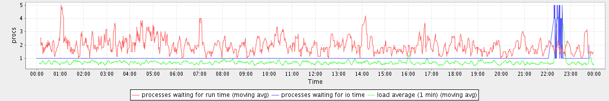 avg(processes waiting for run time) = 0.83 avg(processes waiting for io time) = 0.07 avg(load average (1 min)) = 0.72