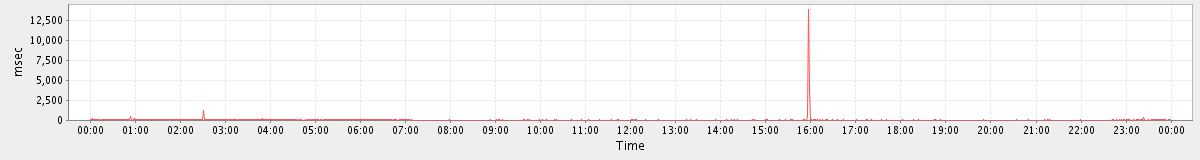 avg(DeleteAccountRequest) = 8444.00 avg(SyncGalRequest) = 7956.95 avg(CheckRecurConflictsRequest) = 1618.51 avg(SendInviteReplyRequest) = 1256.26 avg(AutoCompleteRequest) = 652.76 avg(ConvActionRequest.delete) = 834.98 avg(FolderActionRequest.empty) = 2961.91 avg(ContactActionRequest.update) = 1707.00 avg(BackupRequest) = 14334.50 avg(GetQuotaUsageRequest) = 1171.00