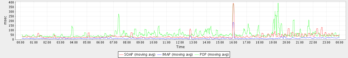 Host zm05.stanford.edu: Mailboxd: Response Time by Client Protocol