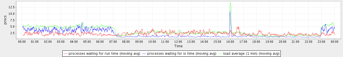 avg(processes waiting for run time) = 1.67 avg(processes waiting for io time) = 1.53 avg(load average (1 min)) = 3.28