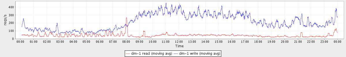 avg(dm-0 read) = 3091.24 avg(dm-0 write) = 372.10