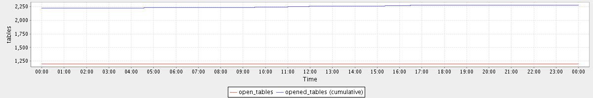 avg(open_tables) = 1199.88 avg(opened_tables (cumulative)) = 2253.06