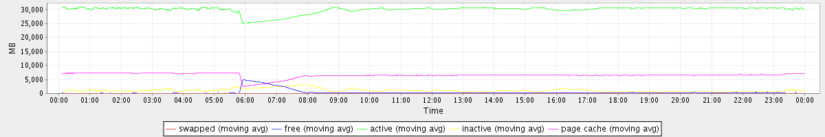 avg(swapped) = 0.23 avg(free) = 413.23 avg(active) = 29964.42 avg(inactive) = 1104.06 avg(page cache) = 6507.58
