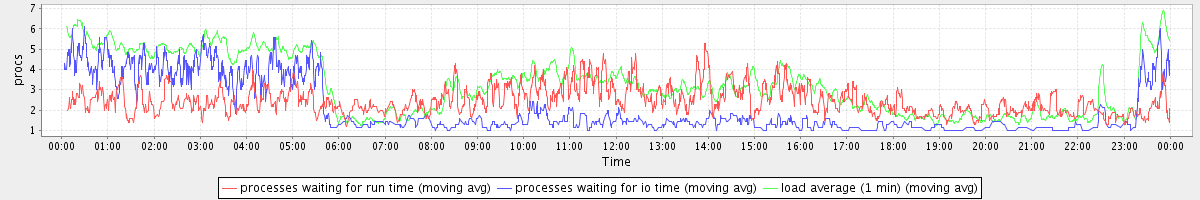 avg(processes waiting for run time) = 1.81 avg(processes waiting for io time) = 1.39 avg(load average (1 min)) = 3.27